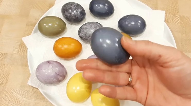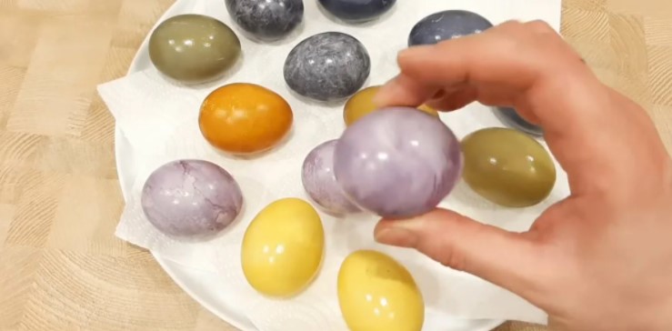 Якщо яйця залишити в розчині каркаде до повного охолодження, то вийде красивий сірий мармуровий колір.